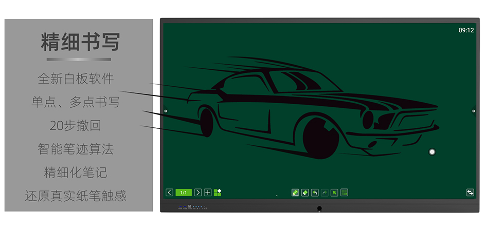 全新白板软件,单点、多点书写模式,20步撤回,智能笔迹算法,呈现精细化笔记,还原真实纸笔触感。